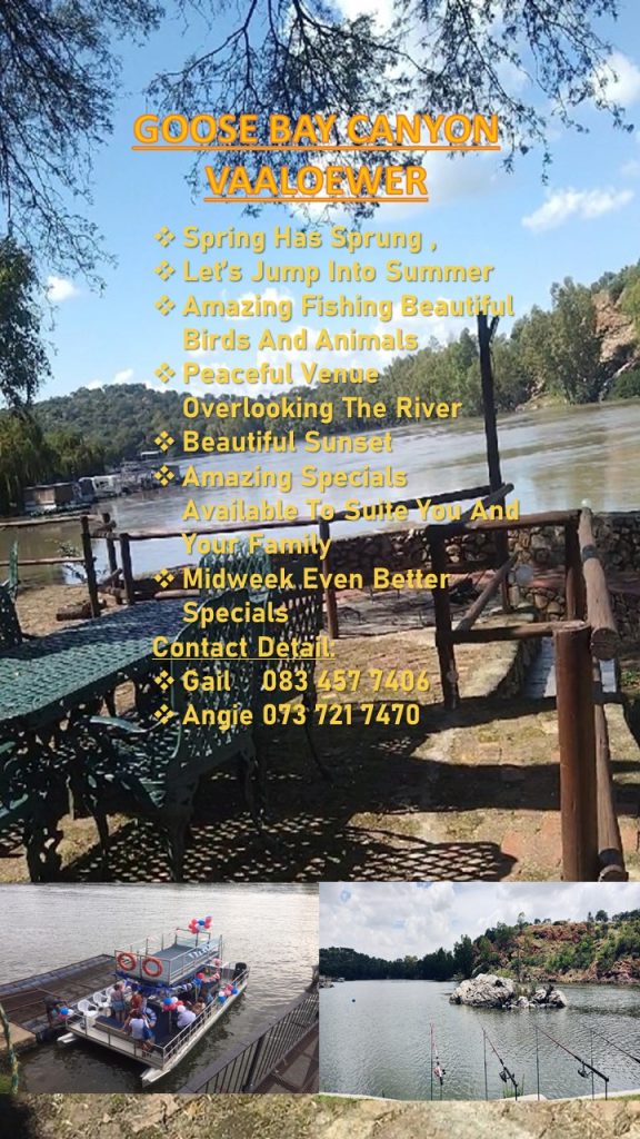 Our glass fronted wedding venue seats up to 80 guests with the ceremony being held in a draped open air chapel area on the edge of the waterfront. Nestled on the banks of the Vaal river, Goose Bay Canyon offers you personal, caring attention for this, your wedding day. The majestic canyon and tranquil waters will surround you as you exchange vows to the cry of the great Fish Eagle.
